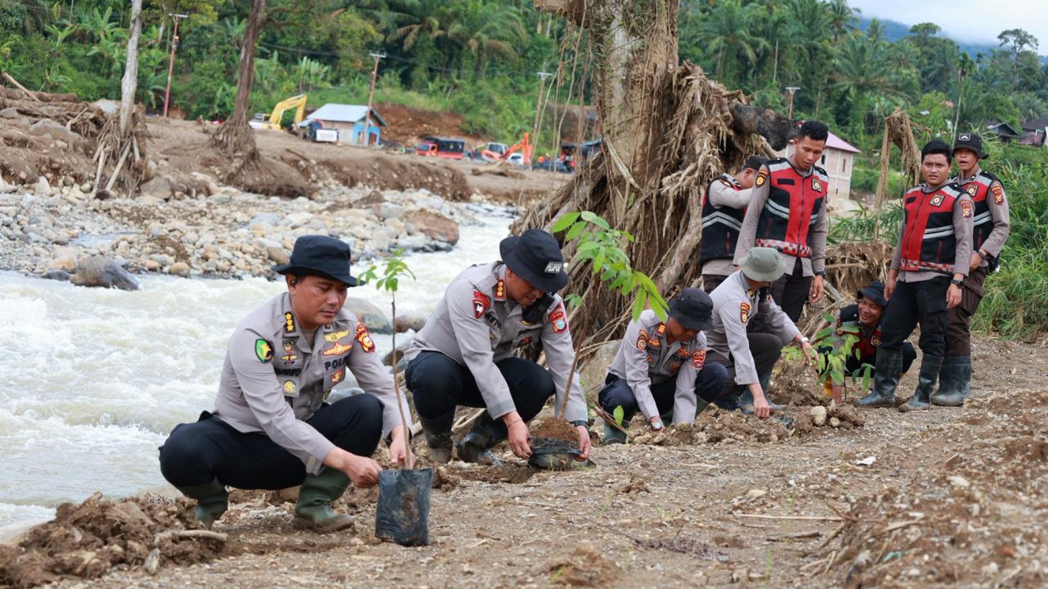 Polsek Kampar Kiri dan Ninik Mamak Bersinergi Tanam Pohon Hijaukan Lingkungan
